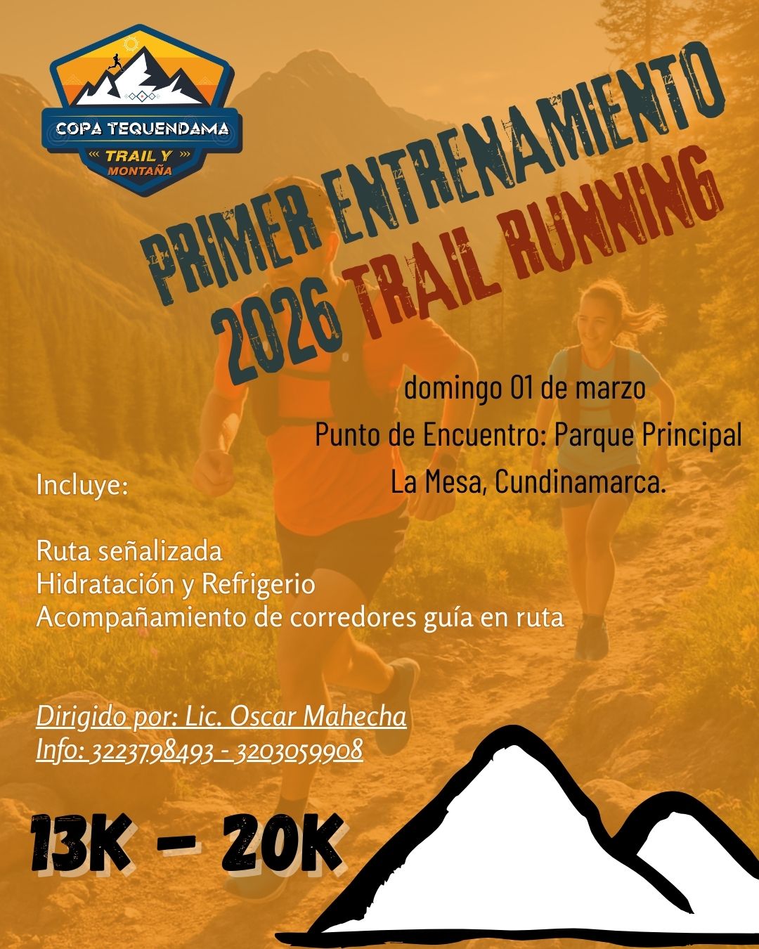 Recomendación: Traer ropa depotiva comoda ideal para la practica del running (prendas ligeras, facil secado y transpirabilidad). Calzado deportivo para terros de montaña o trail.