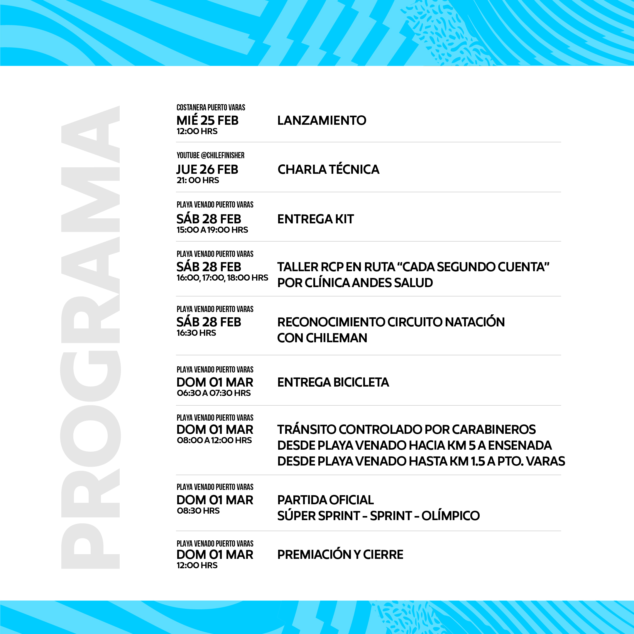 Playa Venado, a solo 20 km de Puerto Varas, será el epicentro de esta competencia que inaugura el calendario de Triatlón 2026 en Chile con este circuito maravilloso en la cuenca del lago Llanquihue. Un evento exclusivo, con un circuito de primer nivel y una producción pensada para brindar la mejor experiencia a cada triatleta.