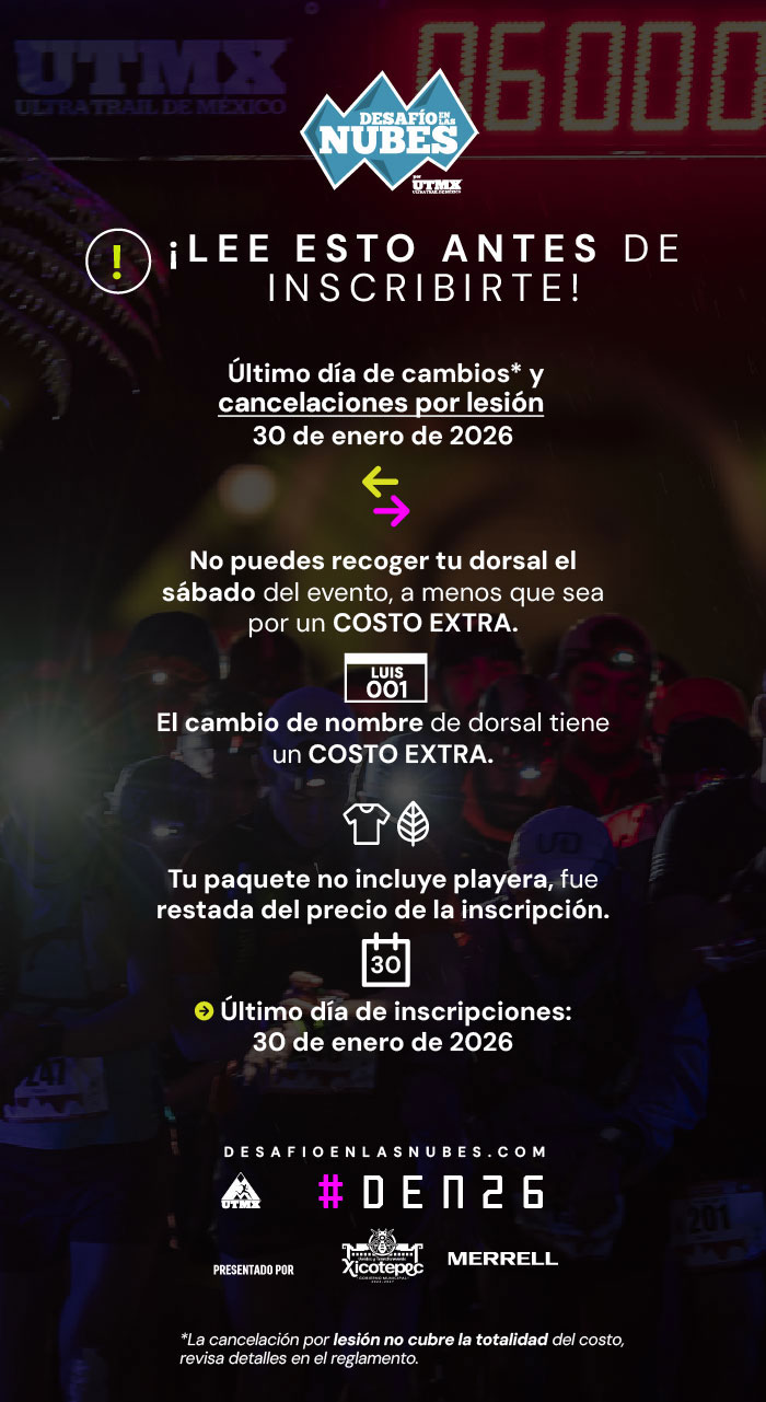 Para más detalles sobre prerregistros e inscripciones visita www.desafioenlasnubes.com